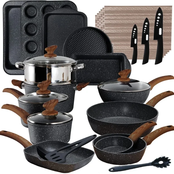 30 Piece Cookware Set Pots and Pans Set Kitchen Granite Non Stick Bakeware Set