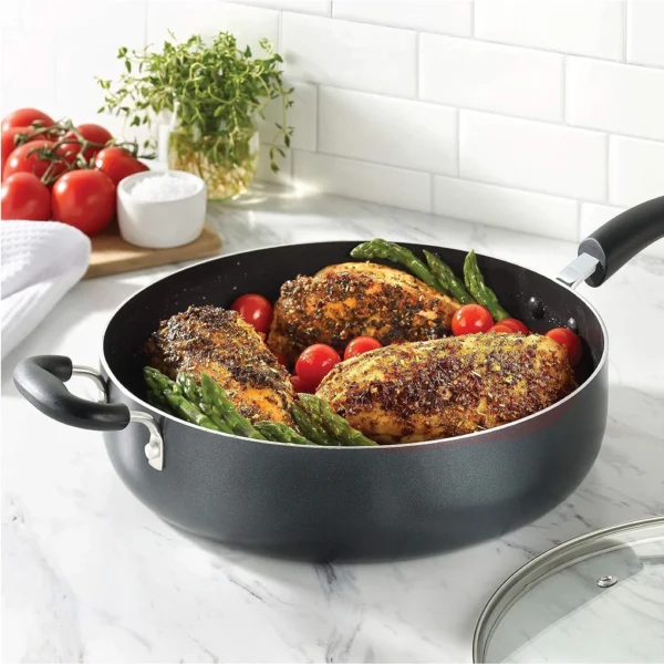 Large Deep Frying Pan With Glass Lid Non Stick Saute Fry Pan 2 Handle 5 QT